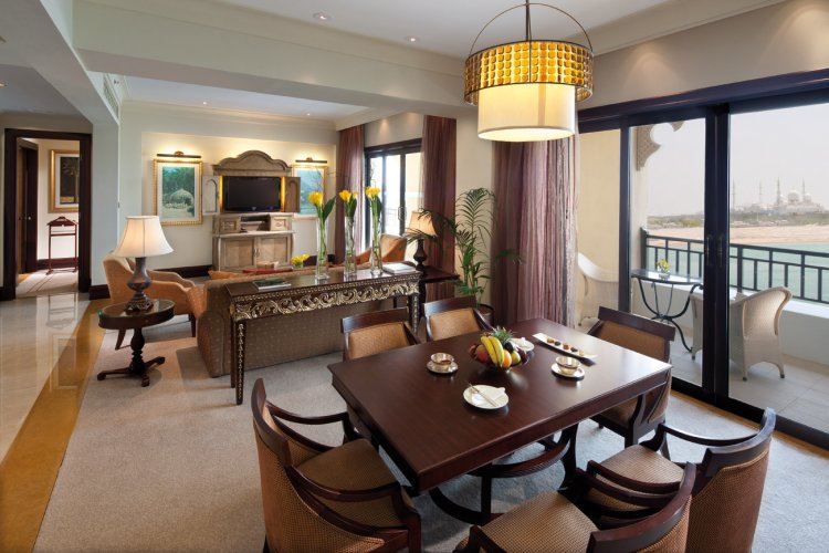 The hotel has 214 rooms and suites as well as six four-bedroom villas all of which are elegantly furnished and include modern facilities with an Arabian flair. The Deluxe rooms include a private balcony with a view of the canal as well as a beautiful marble and mosaic bathroom with walk-in rain shower.