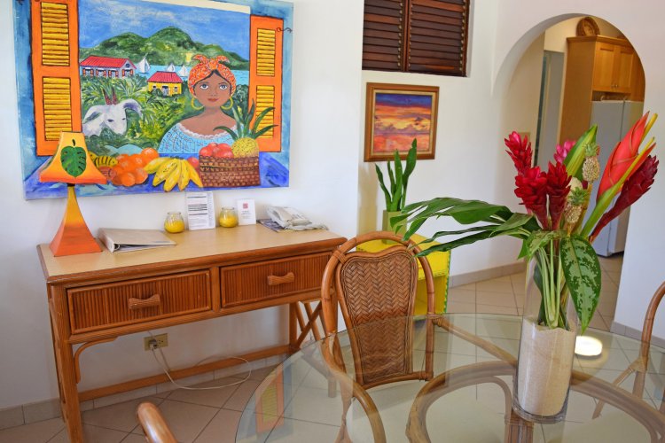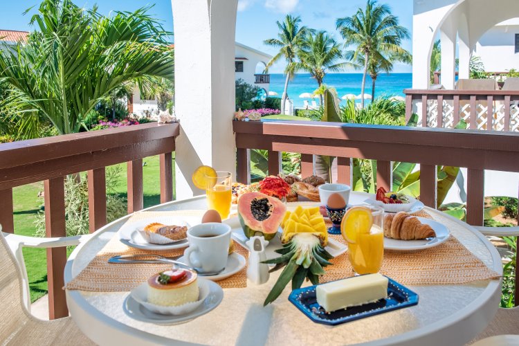 Carimar Beach Club's Meads Bay 24 villa-suites combine the privacy and space of a apartment with the amenities of a hotel such as daily house-keeping and top-tier concierge service. All villa-suites are steps from magnificent Meads Bay Beach, offering unique, exquisitely appointed interiors featuring colorful, tropical motifs and exotic rattan furnishings. These spacious fully air-conditioned one or two-bedroom beachfront or beach view villa suites feature all the comforts of home including: fully equipped modern kitchens with granite counters; a living room and master bedroom with flat-screen cable TVs; free Wi-Fi; a dining area accommodating six people; and a bougainvillea-covered extensive balcony or patio with stunning ocean views, spectacular sunsets, and refreshing trade wind breezes.