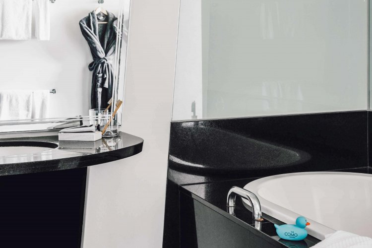 The hotel features 111 guest suites including Superior Rooms, Deluxe Rooms, Studio Suites and Penthouse Suites, all rooms are well appointed and stylishly decorated with the luxuries of a 5 star hotel.  The Loft Penthouse is on split levels and has a private spa and sauna with an open plan lounge, diing table and kitchenette, this contemporary styled room sleeps 2 guests.  The Gold Penthouse which is perfect for entertaining has  open plan living, a grand piano a private balcony and a dining area for 10 people, the bedroom with king sized bed is on the second floor.