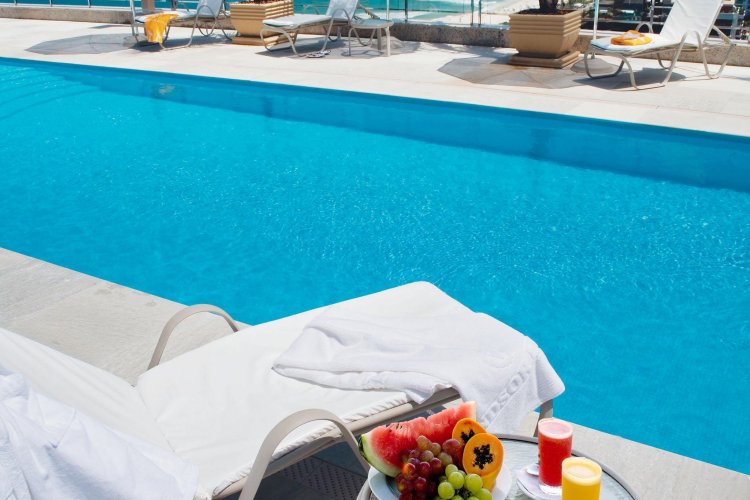 The 5 star hotel has fabulous features including beach services including sun loungers, umbrella's, chairs and towels, wifi throughout the hotel, sparkling swimming pools, a modern fitness room, a sauna and delicious buffet breakfasts.