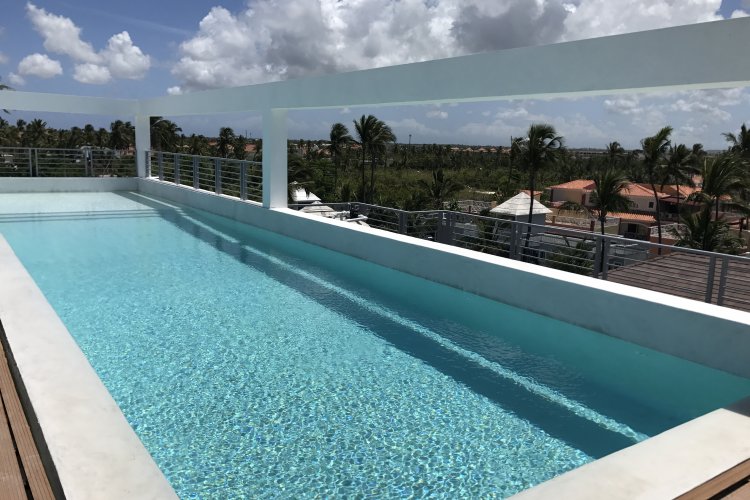 The 4 star Ducassi Suites Beach Club & Spa Rooftop Pool is found in Bavaro, it is 600 meters away from the beach local bars and restaurants are a short walk away, a nice alternative to a typical beach resort hotel.