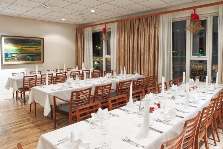 Restaurant serves fish, Icelandic lamb and reindeer meat, with fresh locally sourced ingredients . Homemade jams, syrup of wild berries, and fresh salads