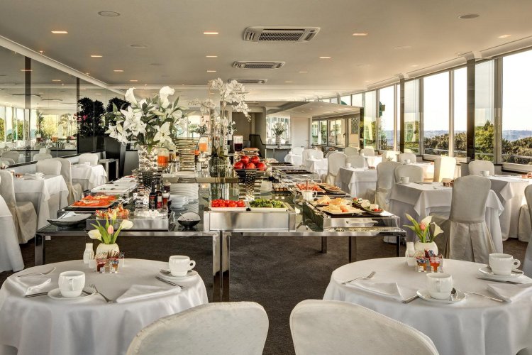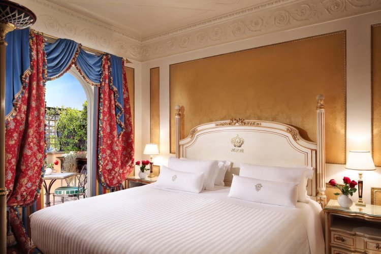 The Hotel Splendid Royal in Rome, where the lush and richness of the city's Baroque period comes to life again is a charming and elegant hotel. The Murano glass chandelier lights up the hotel's hall amidst the marble floors' geometric designs. The Hotel Splendide Royal is located in the Via Veneto area, on a hill above the historic centre of Rome with breathtaking views out over the gardens of Villa Borghese. Designer boutiques and the exclusive shops of Rome's fashion industry are just steps away in the legendary Piazza di Spagna and Via dei Condotti, with many historic monuments and tourist attractions. The rooms are the epitome of luxury and sophistication reminiscent of the elegant boudoirs of the aristocracy, featuring Baroque style decor, boiseries, fine draperies and antique furniture. Most of the rooms have large marble bathrooms with natural light and large terraces with sweeping views out over the city and the lush gardens of Villa Borghese.  All our rooms and suites have free Wi-Fi. The restaurant, Mirabelle, located on the hotel's 7th floor, with huge glass terrace doors open out onto a view of breathtaking city below and breakfast is served at the Crystal Lounge one of the citie most exclusive ballrooms