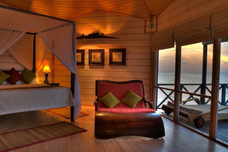 This exclusive resort has a choice of 3 villas: Jacuzzi Water Villa, Jacuzzi Beach Villas and Beach Villas.