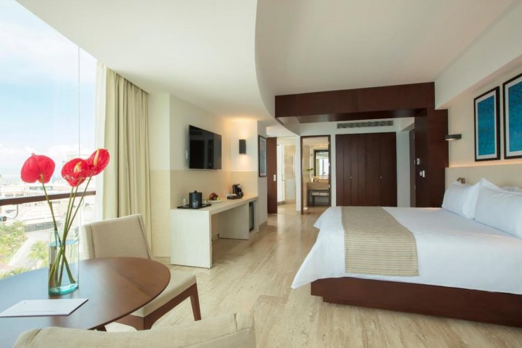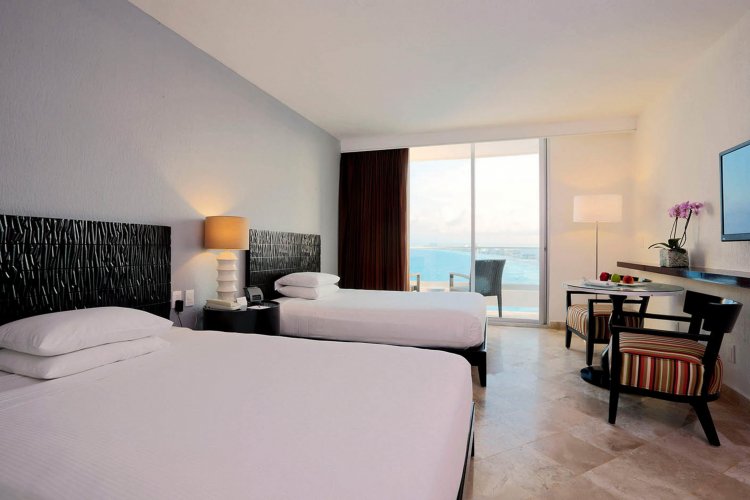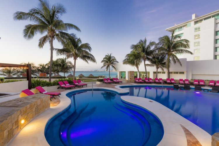 The 5 star Krystal Grand Cancun is an exclusive beachfront property, located in the Punta Cancun area in the heart of the Hotel Zone. Housed in a building with avant-garde architecture, the hotel is a display of a modern interior design, complemented by a range of services that guarantee a pleasant stay in Cancun.   It has an outdoor pool, gym, children's club, children's play area, spa, business center, a wide gastronomic offer in its consumption centers, as well as a range of fun activities.