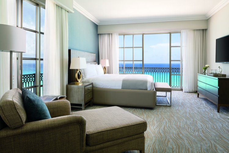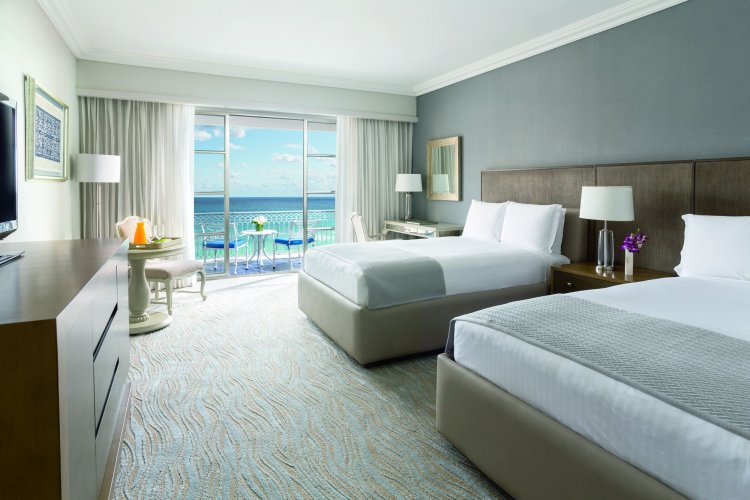 There numerous types of  rooms to suit requirements and the Ocean View room features 1 king size or 2 double beds, Beautiful beach and ocean views, Furnished balcony for maximum enjoyment of room views, Refreshment center with coffee maker and honor bar in room, large, flat-screen TV in room with remote controls, On-demand video, video games and viewing guide available, iPod docking station in room for convenience.  Plush terry cloth or lightweight bathrobe and slippers for guests,  Luxury Asprey bathroom amenities, Dual vanities for your convenience. Large marble baths with separate rain-shower and tub.