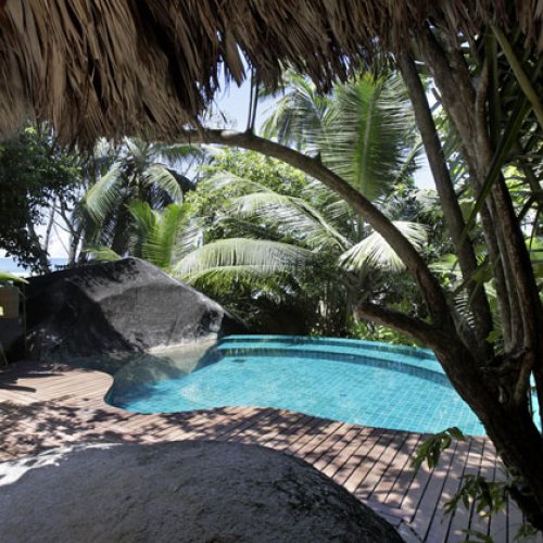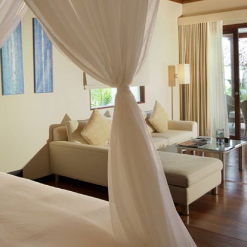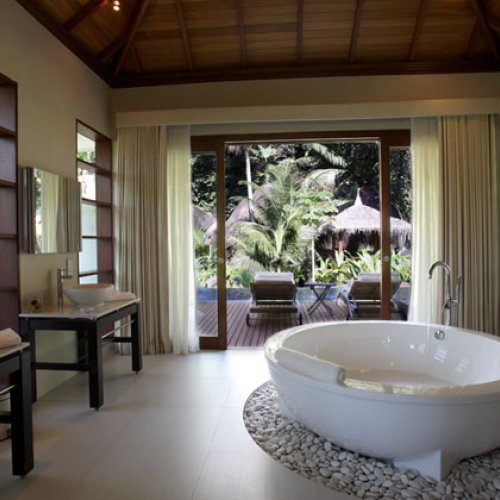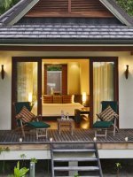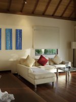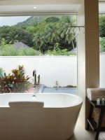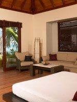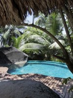 Room 10.0 / 10 As I walk up the beach towards my beach front stilted Detached Villa . The Indian Ocean azure gentle waves wash away my foot prints . I pass the two palms and leaning coconut tree with its notched out foot placements on its slender truck .my stringed hammock awaits my afternoon attention . Three wooden steps up to a wooden porch I slide the patio doors slowly so as not to disturb my sleeping wife in our 7ft sq bed . I walk past our bed to enter our bathroom with its open aired rainforest enclosed walled shower garden , an amazing shower in 31 degrees in a rain Forrest using the Hilton hotels top of the range products and as I wash the Indian Ocean from my skin I think how awesome this Tropical holiday island is and Thank Christine at www.Holidaysplease.com for finding this paradise Steve & Sandra Gallagher - [ ]