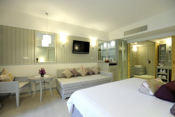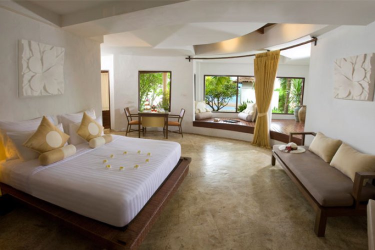 All the villas and suites at the Aleenta Resort are either right on the sand or high on the hillside, with fine sea views through the floor-to-ceiling windows. All are decorated beautifully and have modern amenities like iPod and idock, but no TV.