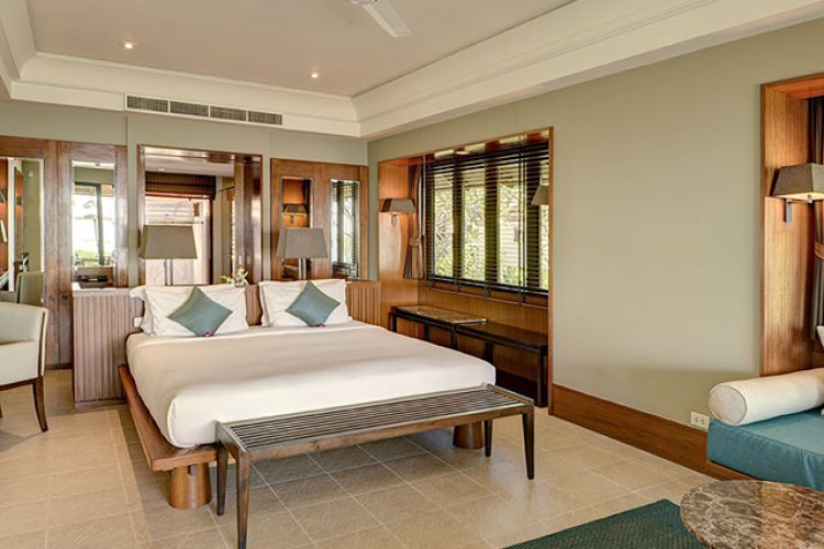 Garden Pavilion rooms offer 49sq metres of living space in a contemporary Thai style and natural, luxurious décor, each room is located in separate two storey units with a large balcony, garden and mountain views. Beach suites are perched on the edge of the beach overlooking the sea and the Ocean deluxe suites are set back from the beach, covering 88sq metres and have an exclusive open upstairs living area.