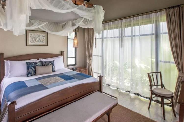 The Deluxe plunge pool rooms offer nearly 100 square metres of vintage inspired luxury. Rooms are elegantly decorated with a partly outdoor bathroom and rain shower. Both suites can be adjoining for families or groups.