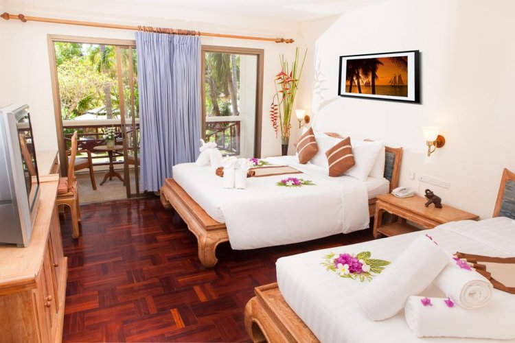 The 74 rooms are decorated in the traditional Thai style with dark wood furnishings, TV, tea & coffee making facilities, in room fridge, en suite bathrooms and terrace or balcony.