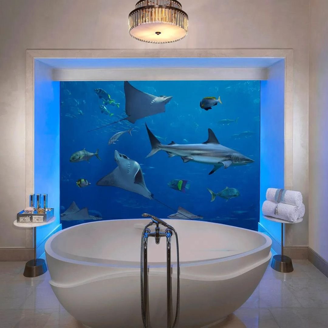 You may already know the world-famous Atlantis the Palm hotel in Dubai, but many have never seen the Underwater Suite. With floor-to-ceiling views into one of the world’s Top 10 Largest Aquariums, lie back and witness spectacular views of rays, fish and sharks as they glide right past your bedroom!