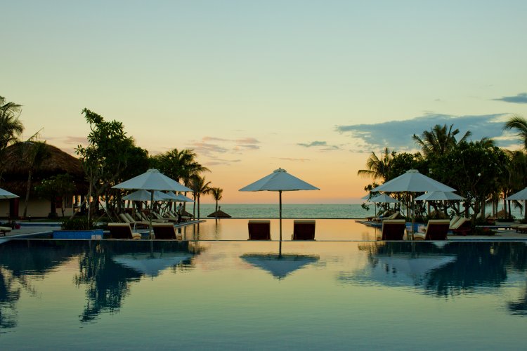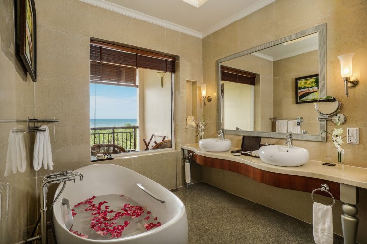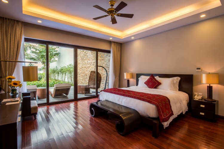 The elegant rooms are spacious and beautiful in decor reflecting a French colonial style with hints of Vietnamese beauty.  Room types include Deluxe Ocean View, Executive Suite and stylish villas with private pools.