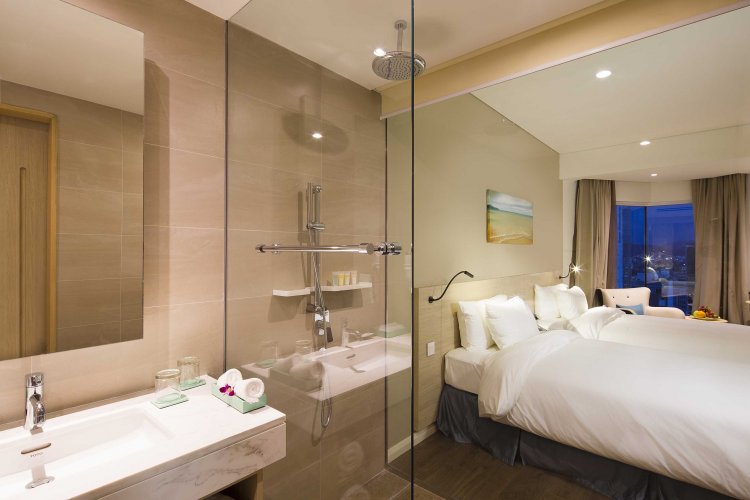 The 4-star contemporary hotel has 227 luxurious guest rooms over 20 floors with superb ocean views and easy access to the beach, and they have a warm and pleasant homey feeling. Modern comforts such as complimentary wireless internet, non-smoking rooms, air conditioning, wake-up service, desk can be found in selected rooms.